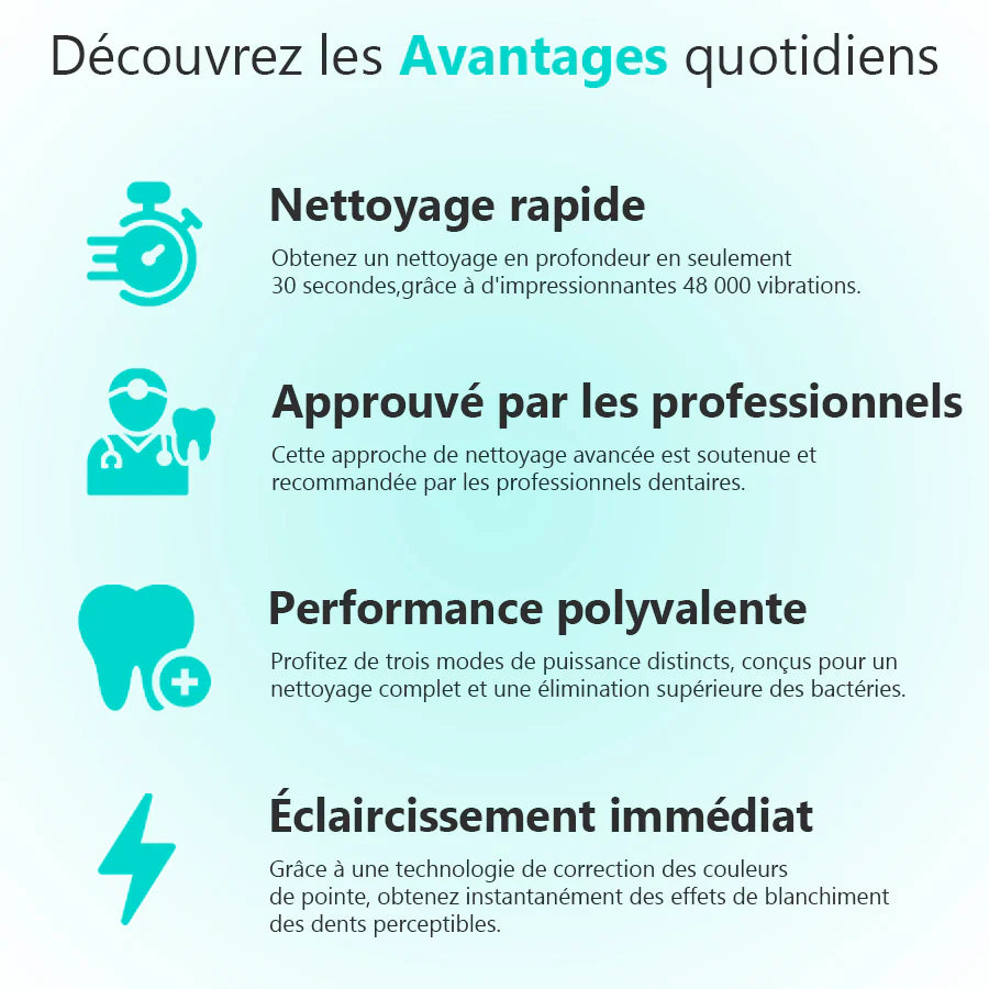 🦷 Technologie Sonique de Pointe pour un Nettoyage Profond