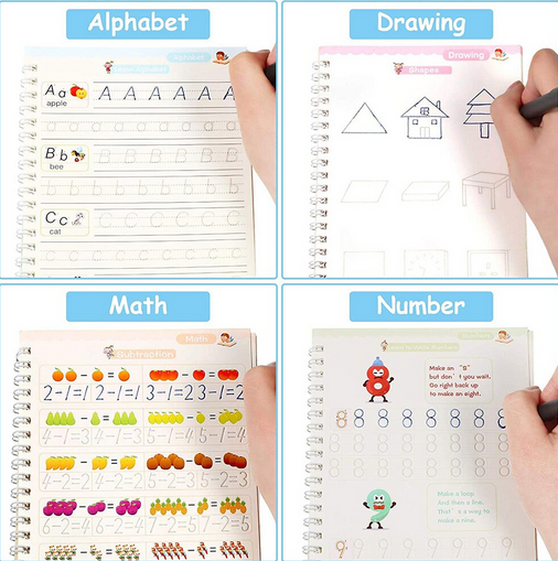 Notre cahier de calligraphie magique offre bien plus qu'un simple apprentissage de l'écriture anglaise. Il propose une aventure éducative complète, couvrant l'alphabet, les mathématiques, la peinture et les nombres.