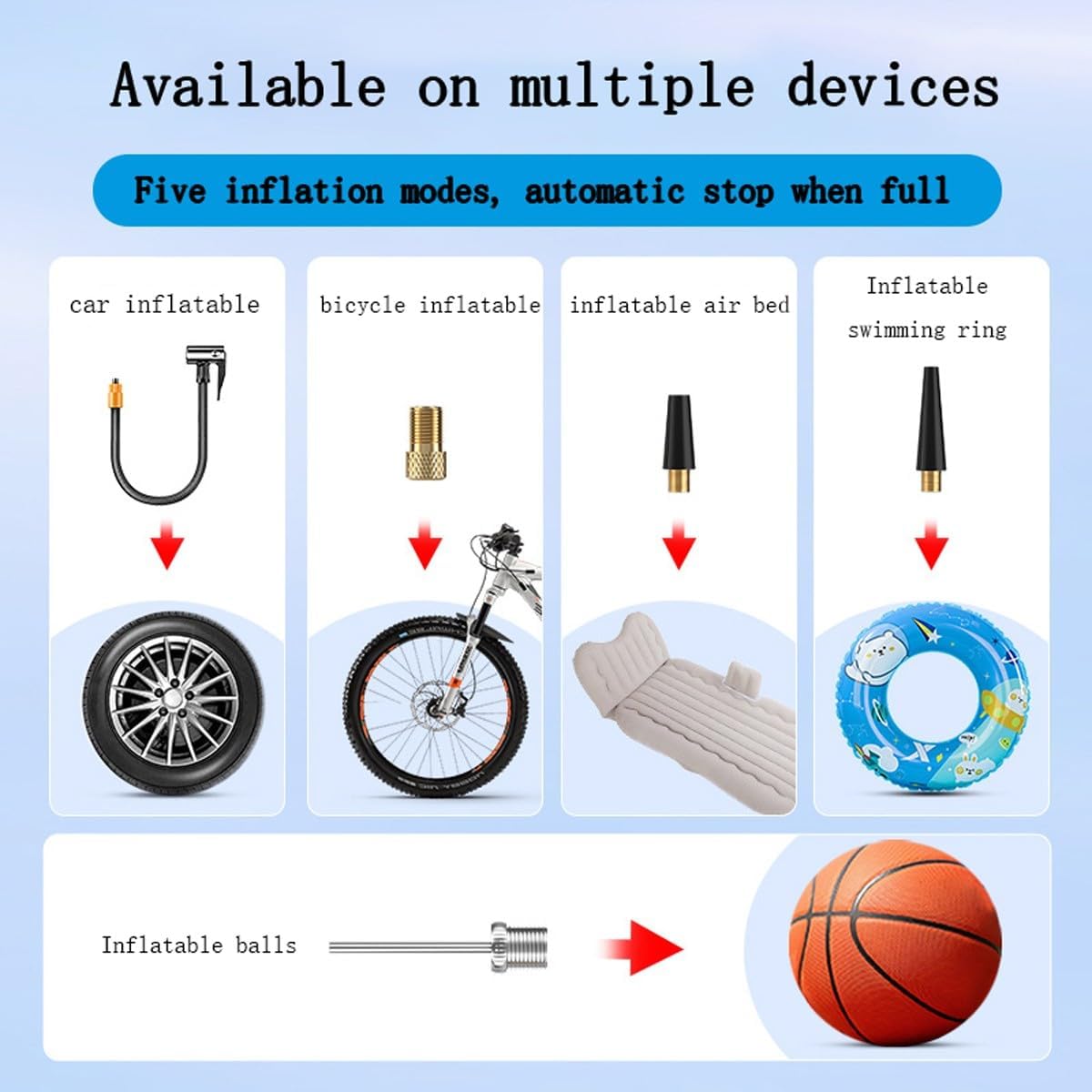 Besoin de gonfler vos pneus ou un ballon en urgence ? La pompe intelligente LED intégrée vous permet de régler facilement la pression d’air recommandée. Que ce soit pour votre voiture, votre vélo ou vos équipements sportifs, ce compresseur est prêt à vous assister en toutes circonstances.