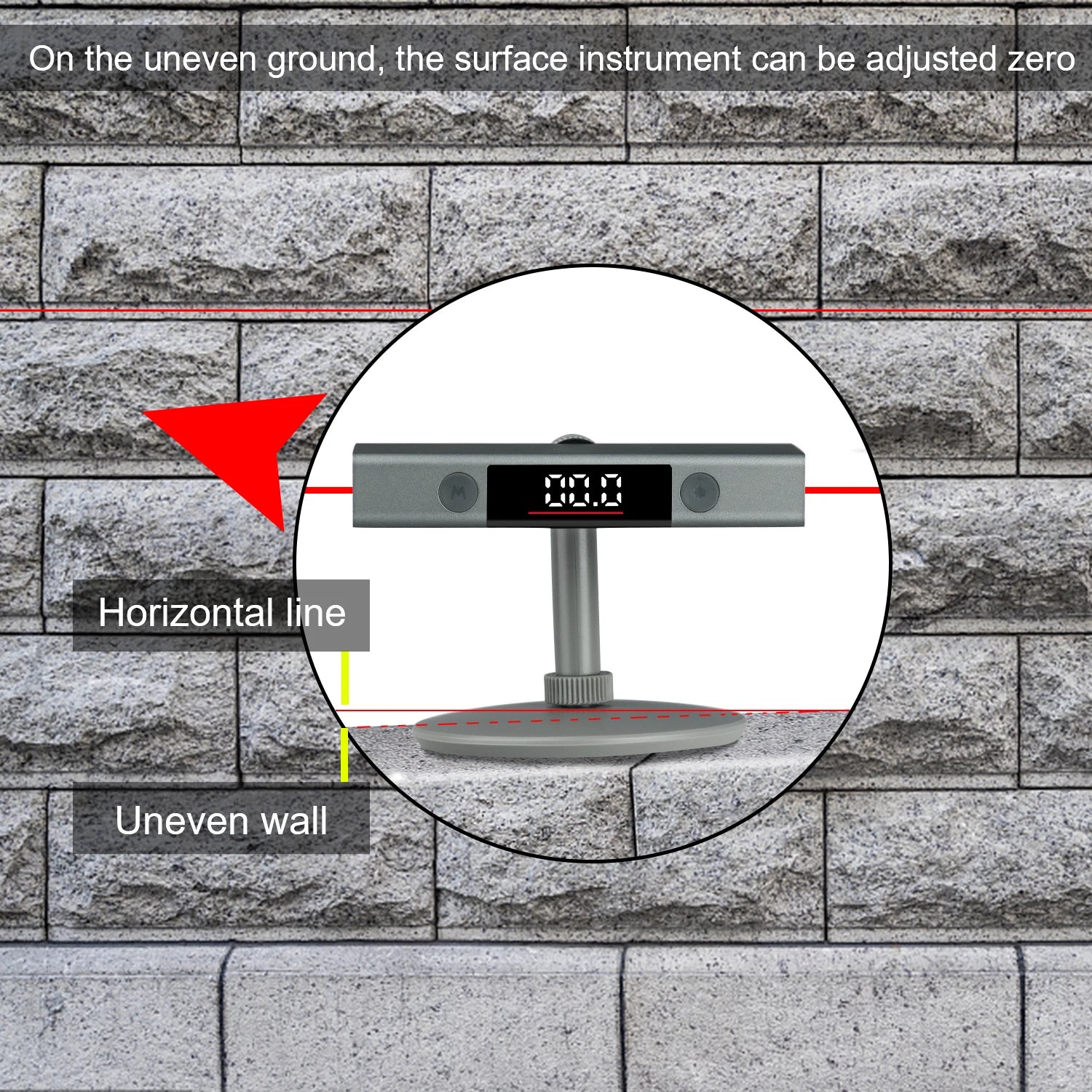 1-Activez le Laser : Appuyez sur le bouton pour activer le marquage laser dans la direction souhaitée.2-Placez l'Inclinomètre : Positionnez l'appareil sur la surface à mesurer et alignez les repères laser.